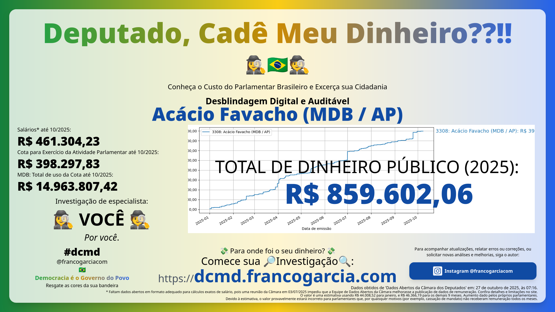 - Total gasto com Acácio Favacho (MDB/AP): 💸 R$ 859.602,06 💸