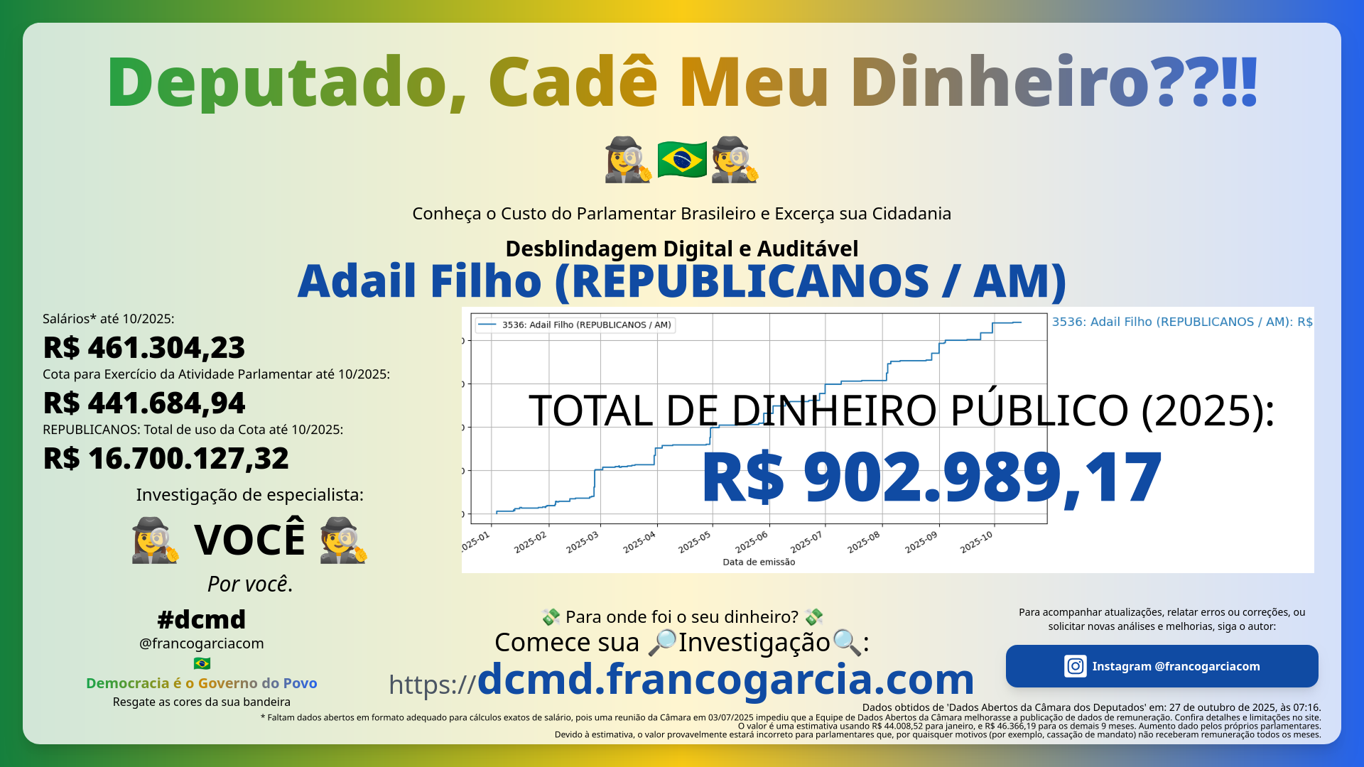 - Total gasto com Adail Filho (REPUBLICANOS/AM): 💸 R$ 902.989,17 💸