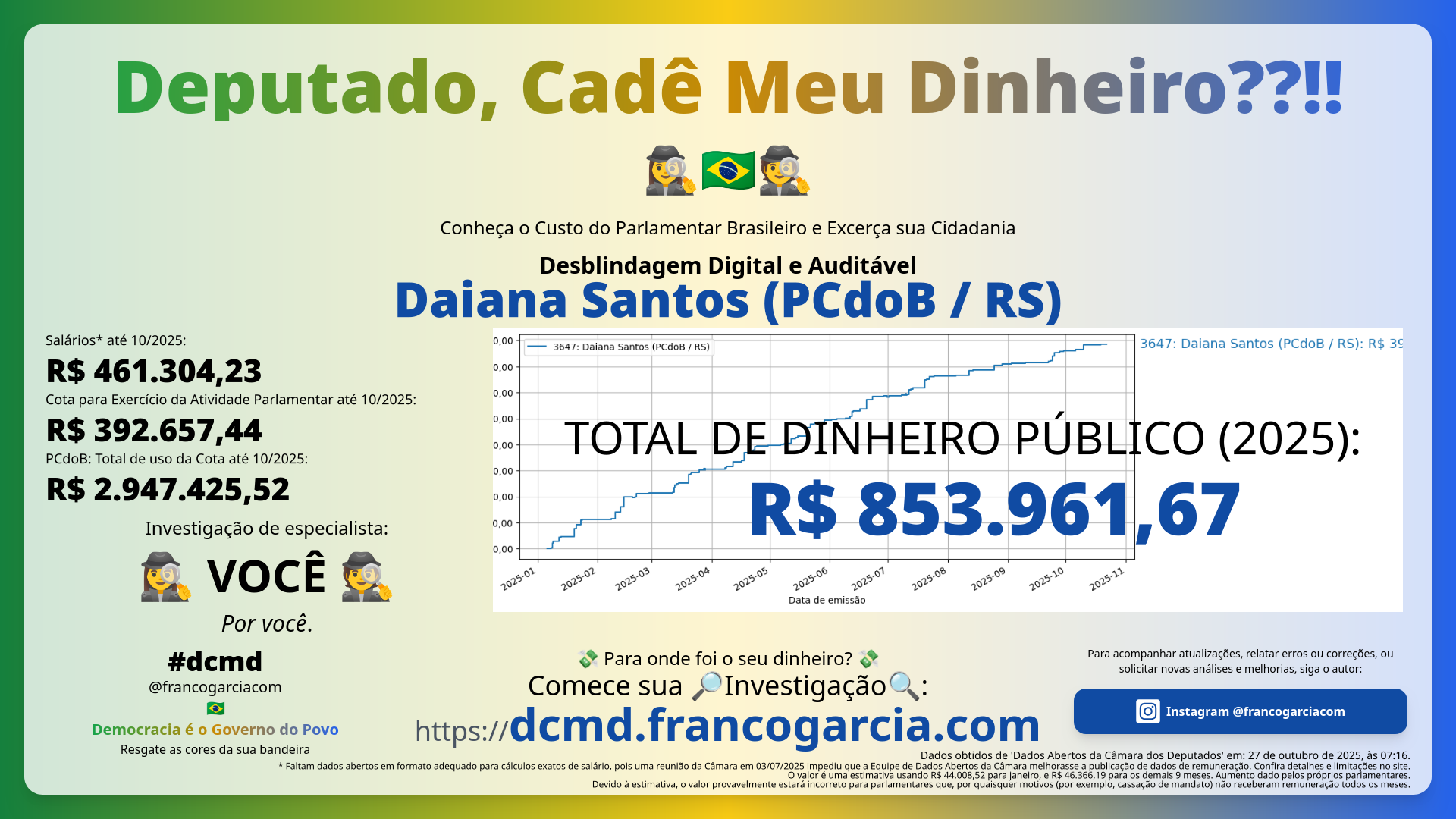 - Total gasto com Daiana Santos (PCdoB/RS): 💸 R$ 853.961,67 💸