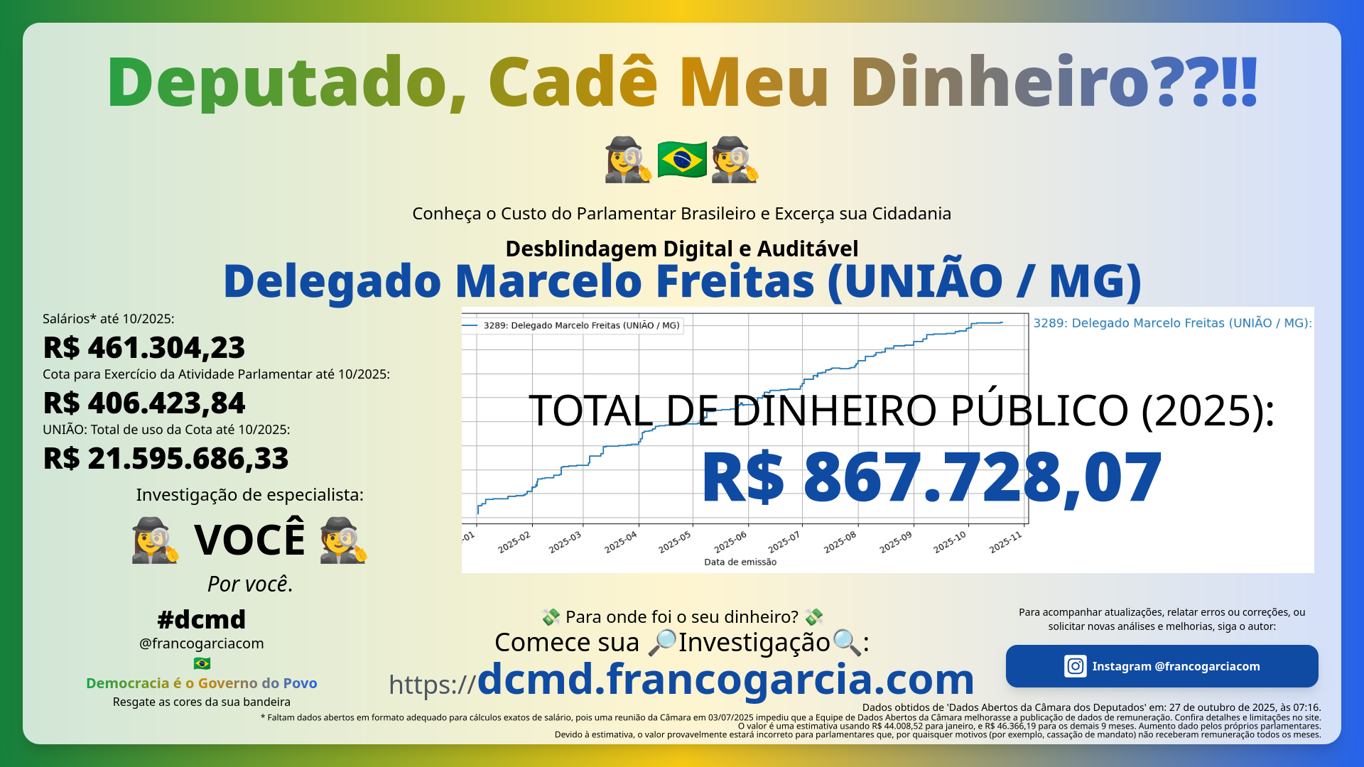 - Total gasto com Delegado Marcelo Freitas (UNIÃO/MG): 💸 R$ 867.728,07 💸