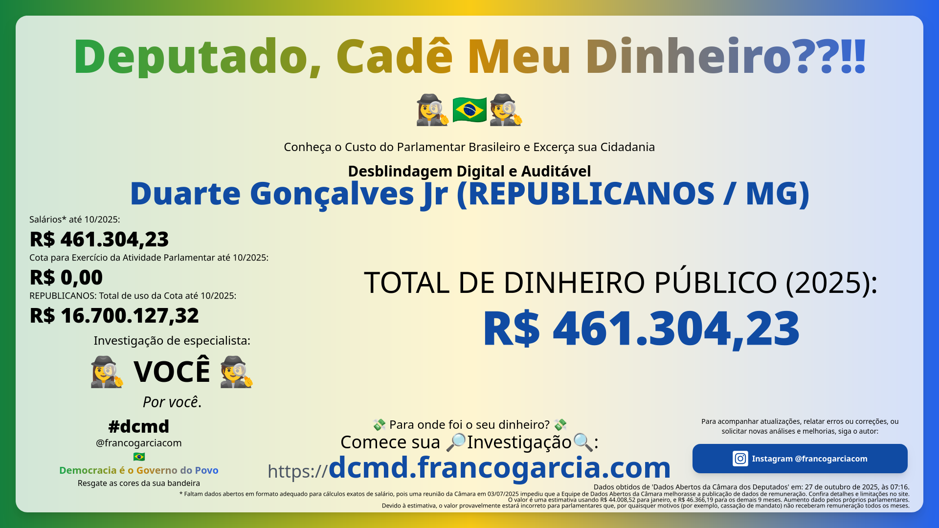 Duarte Gonçalves Jr (REPUBLICANOS / MG), Cadê Meu Dinheiro??!!