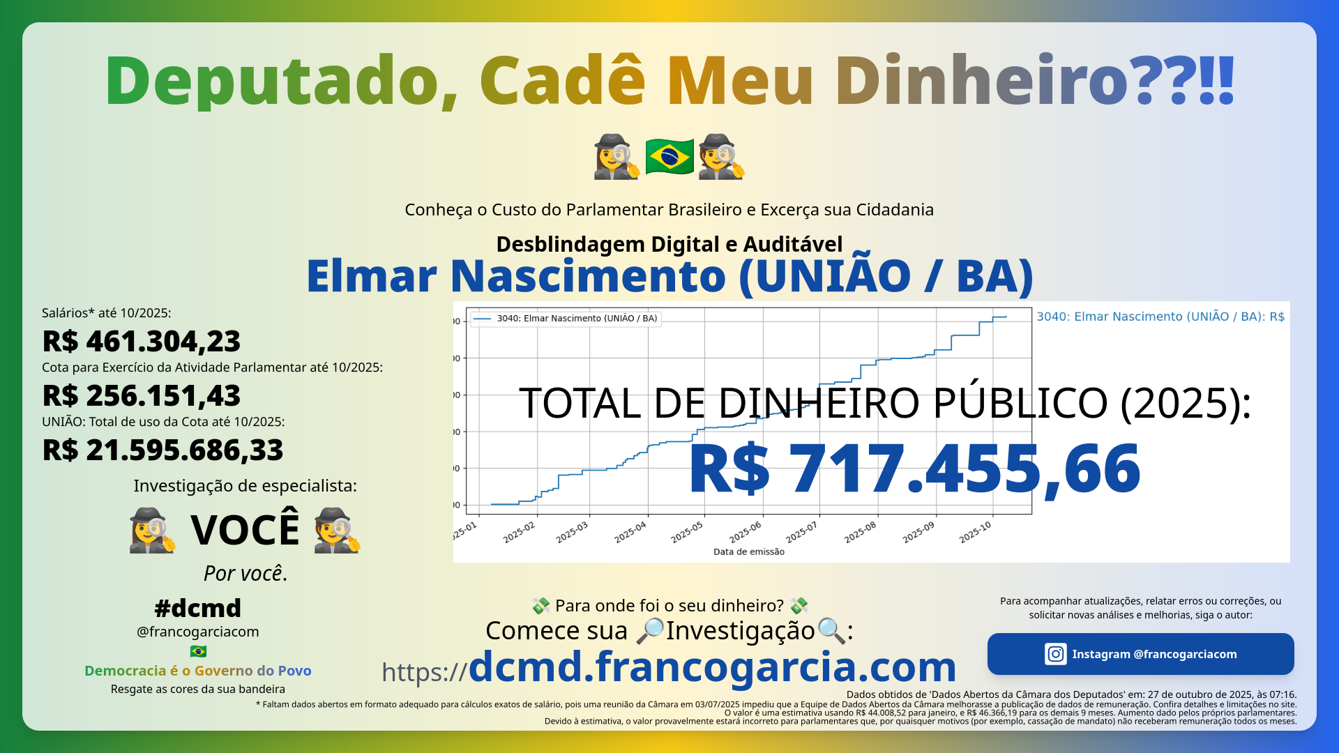 - Total gasto com Elmar Nascimento (UNIÃO/BA): 💸 R$ 717.455,66 💸