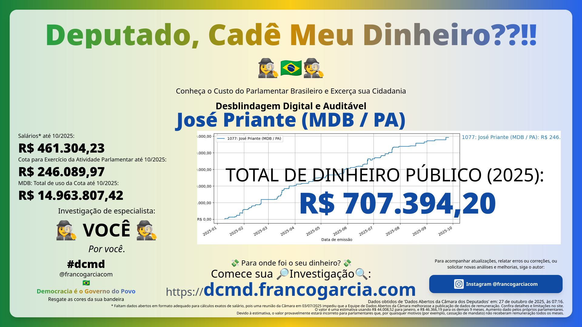 - Total gasto com José Priante (MDB/PA): 💸 R$ 707.394,20 💸