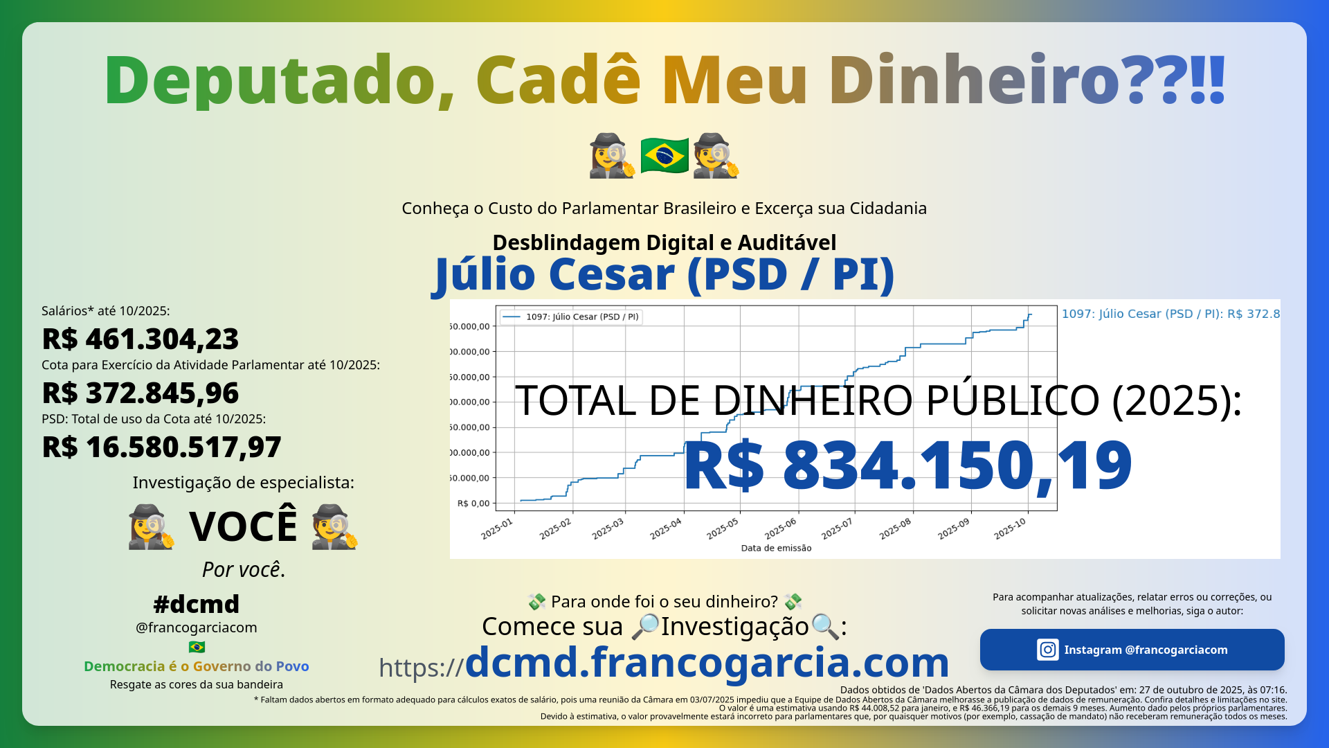 - Total gasto com Júlio Cesar (PSD/PI): 💸 R$ 834.150,19 💸