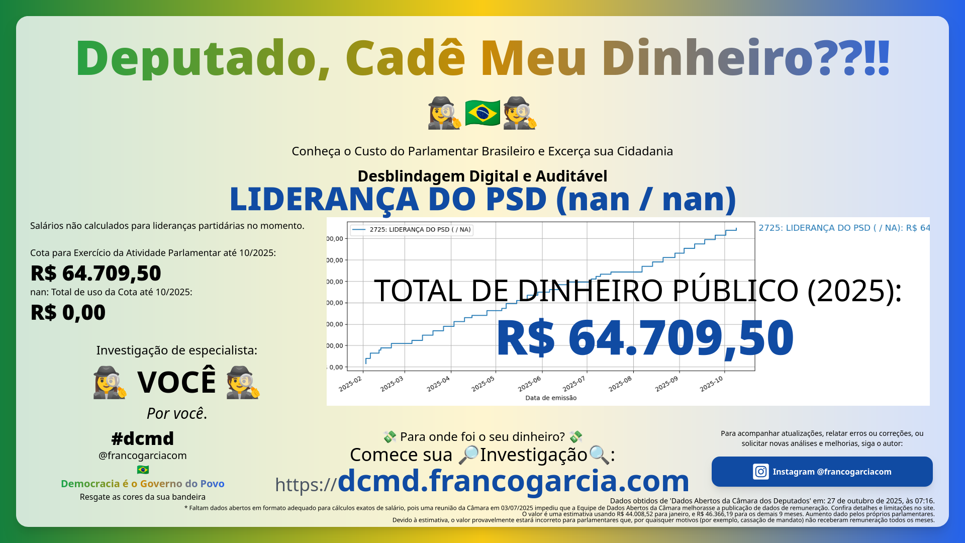 Em 2025, quanto LIDERANÇA DO PSD (nan/nan) e o nan usaram do seu dinheiro com a Cota para Exercício da Atividade Parlamentar?