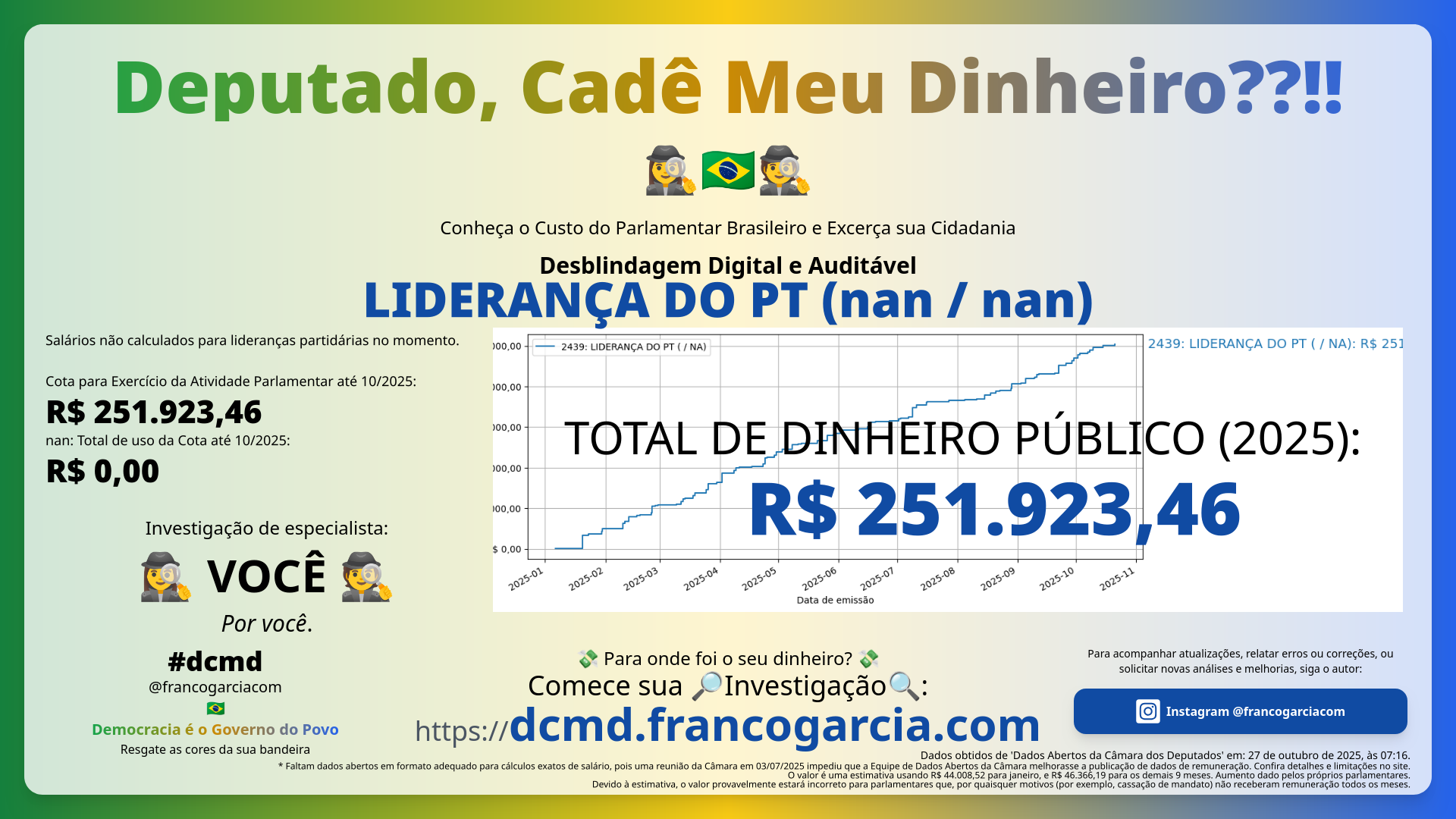 Em 2025, quanto LIDERANÇA DO PT (nan/nan) e o nan usaram do seu dinheiro com a Cota para Exercício da Atividade Parlamentar?