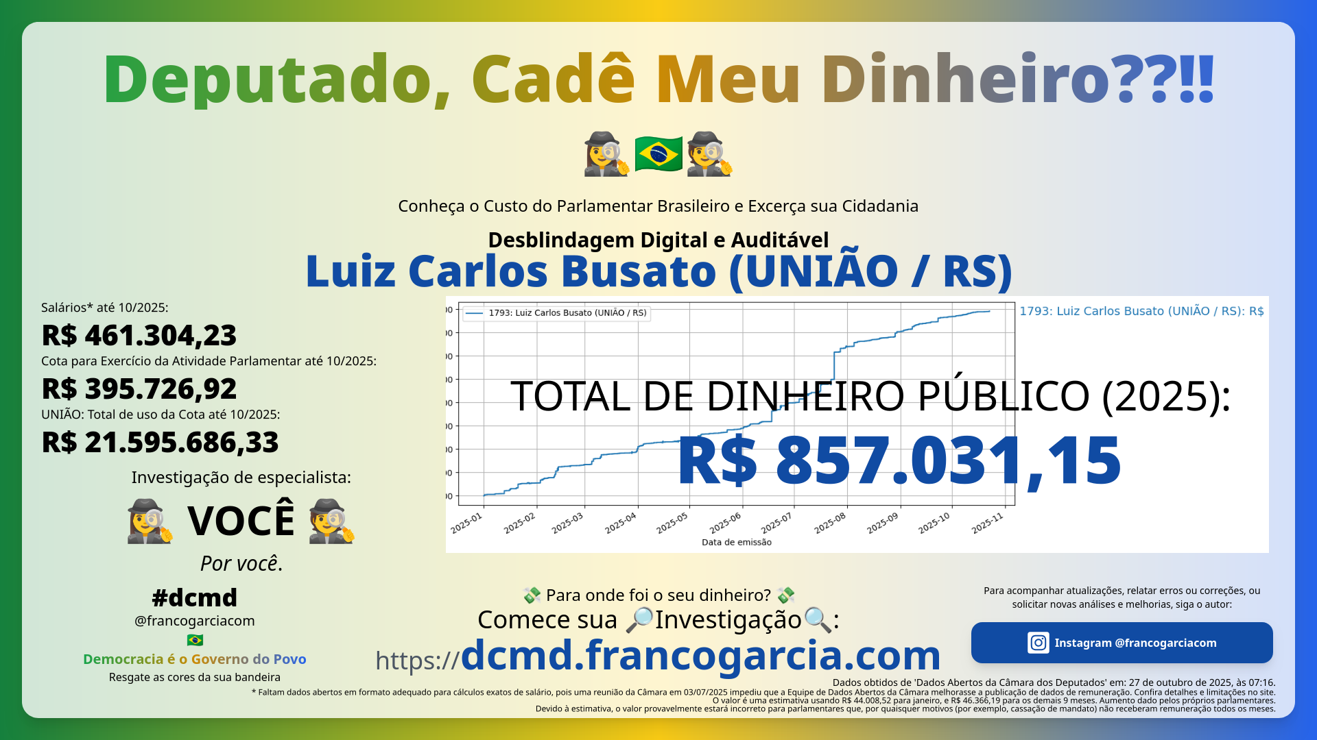 - Total gasto com Luiz Carlos Busato (UNIÃO/RS): 💸 R$ 857.031,15 💸