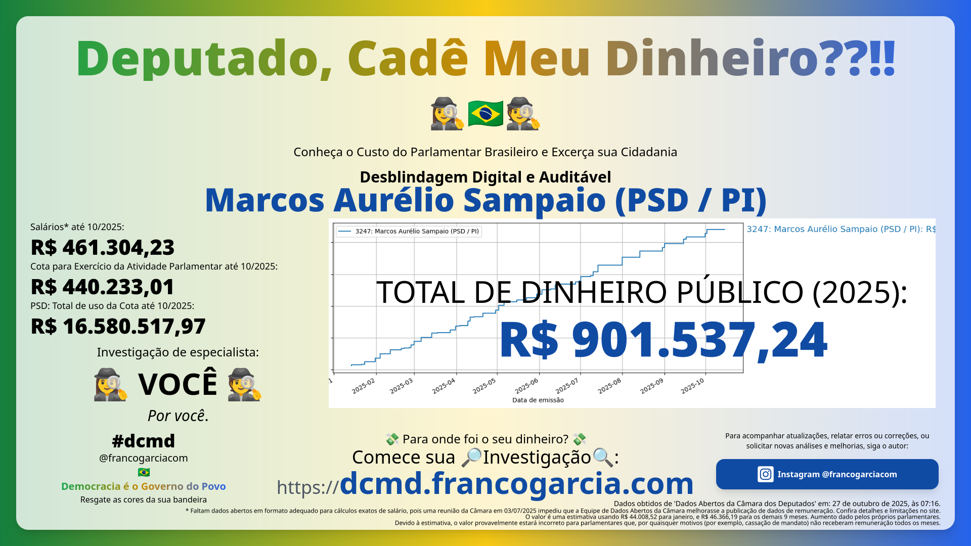 - Total gasto com Marcos Aurélio Sampaio (PSD/PI): 💸 R$ 901.537,24 💸