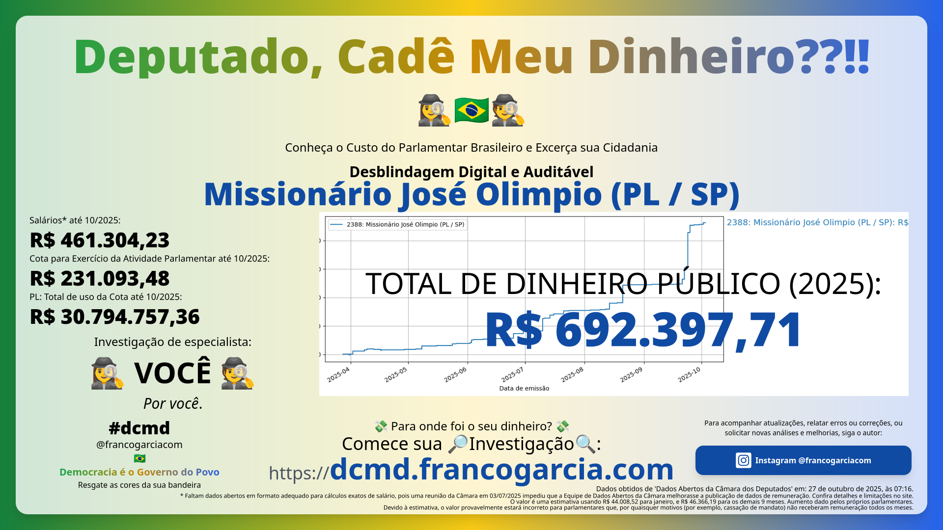 - Total gasto com Missionário José Olimpio (PL/SP): 💸 R$ 692.397,71 💸