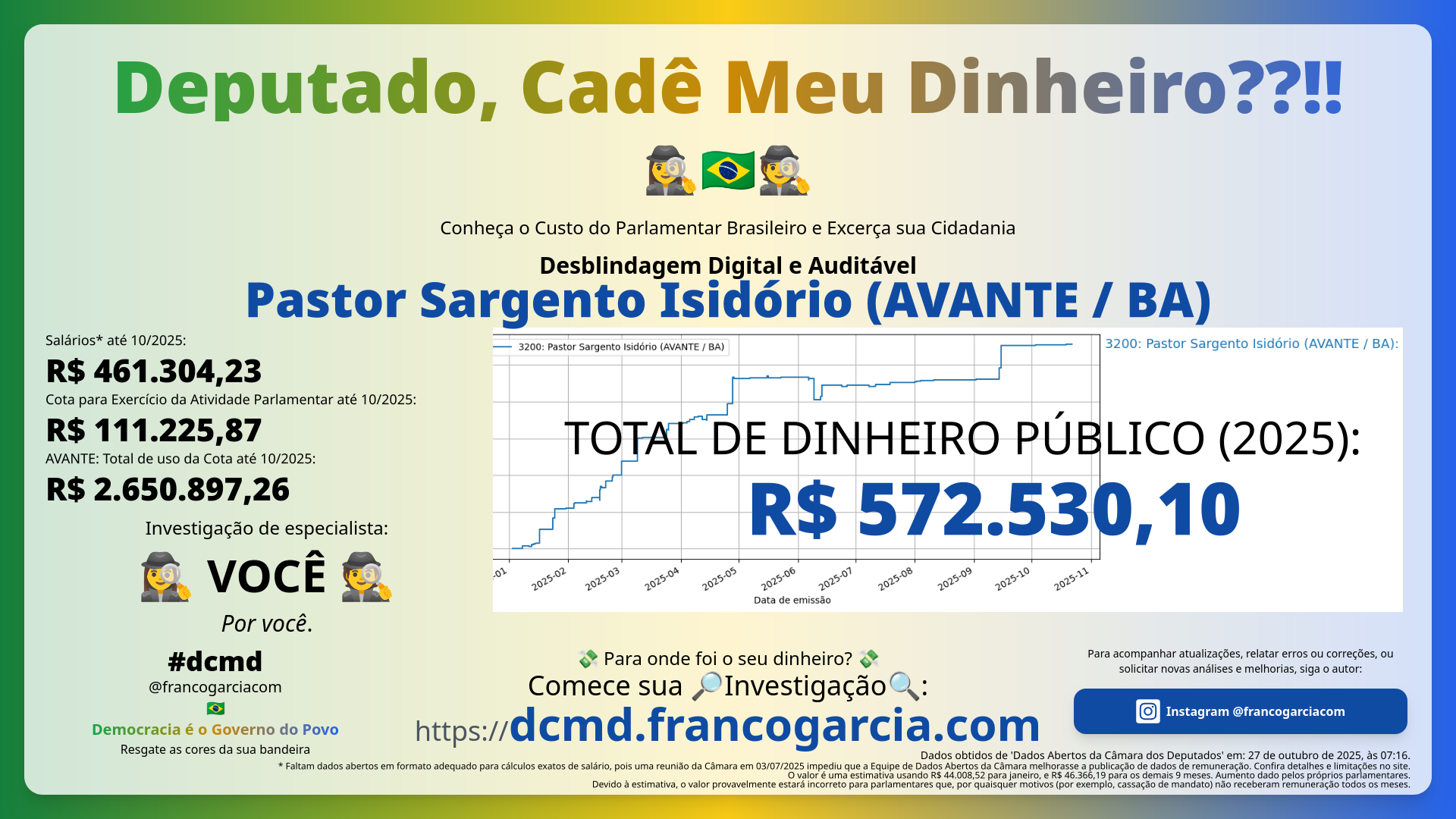 - Total gasto com Pastor Sargento Isidório (AVANTE/BA): 💸 R$ 572.530,10 💸