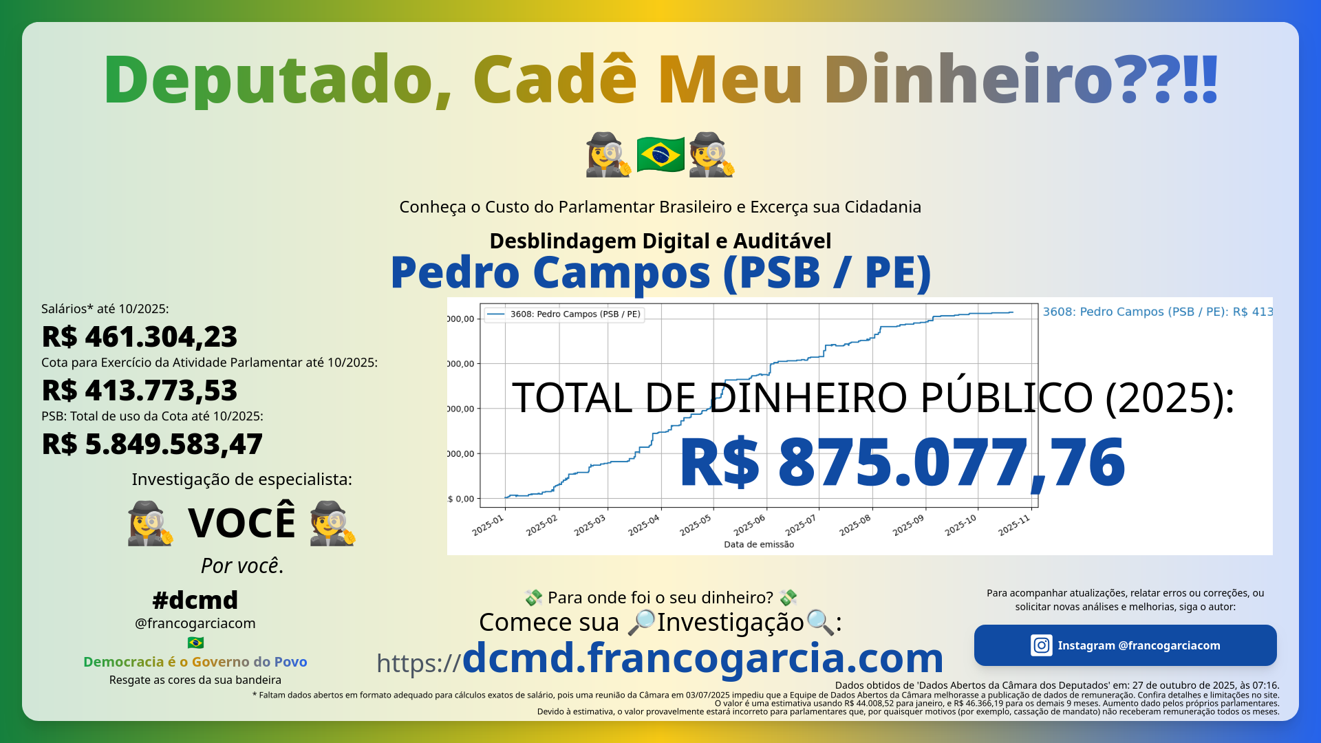 - Total gasto com Pedro Campos (PSB/PE): 💸 R$ 875.077,76 💸
