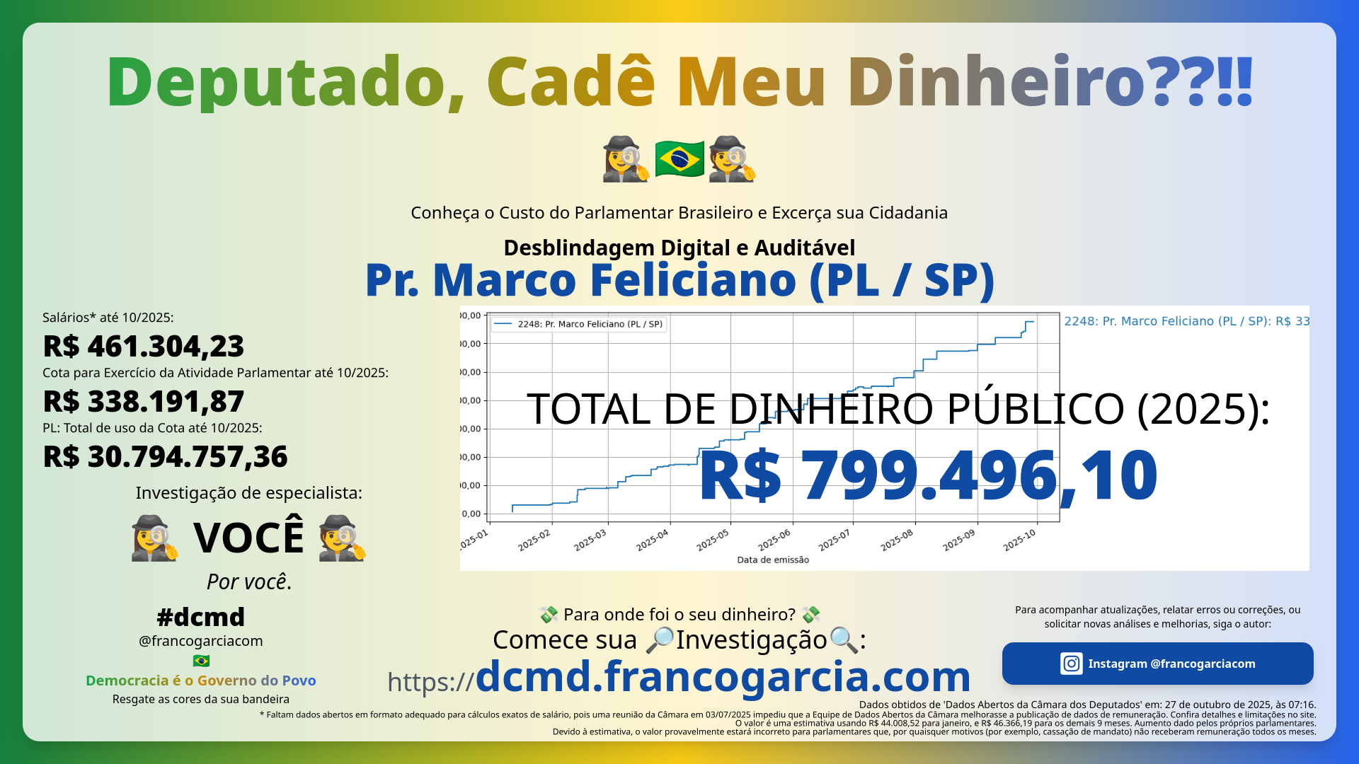 - Total gasto com Pr. Marco Feliciano (PL/SP): 💸 R$ 799.496,10 💸