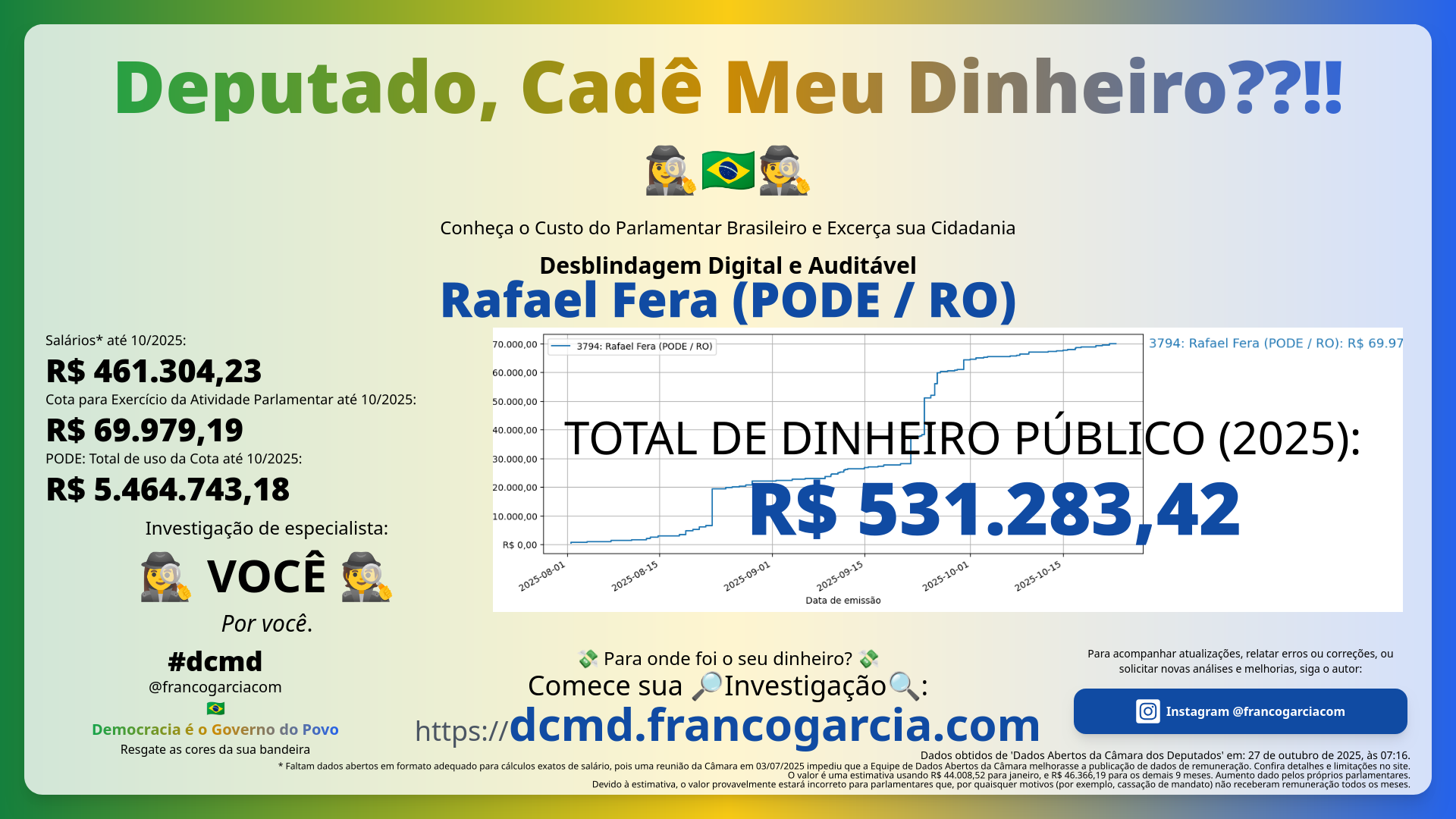 - Total gasto com Rafael Fera (PODE/RO): 💸 R$ 531.283,42 💸