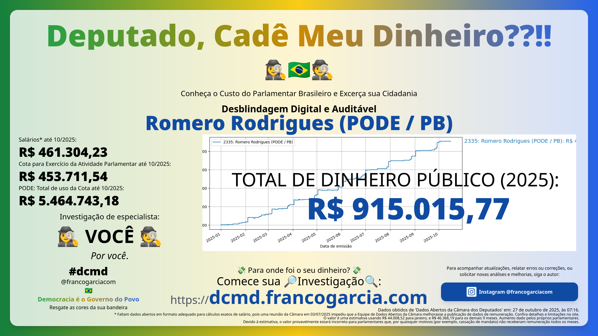 - Total gasto com Romero Rodrigues (PODE/PB): 💸 R$ 915.015,77 💸