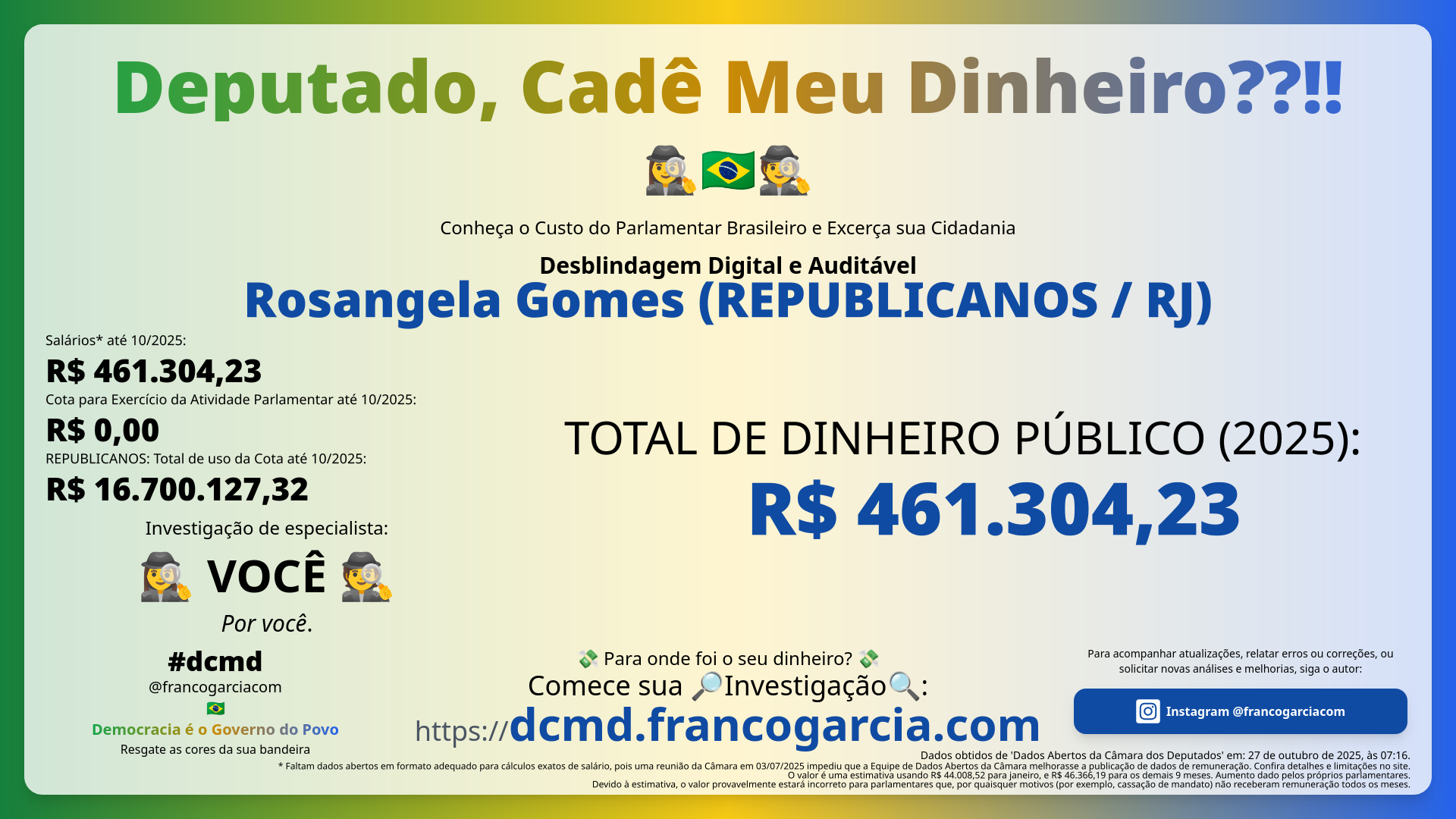 Rosangela Gomes (REPUBLICANOS / RJ), Cadê Meu Dinheiro??!!